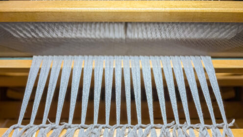 ◆製作中 機上げ(はたあげ) 整経(せいけい/縦糸作り)祭りの長き眠りから覚めついに織機の前へ… 昨年10月中旬に織りが終わり、それからの約4ヶ月ずいぶん長い間、織機の前に居なかったんだなぁそんな風に思いながら機上げ(※1)作業しました※1:はたあげ/縦糸を織り機に張ること 巻取り(縦糸になる糸を巻き取っていきます)↓綜絖(そうこう/上下に動き模様を作る部分)通し↓筬(おさ/横糸をトントン打ち込む部分。櫛状)通し↓結びつけ(全... 2026.02.14 ◆製作中コットンシルクマフラー手染め素材-その他草木染め進捗