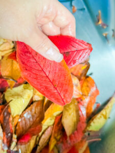 真っ赤に紅葉した葉っぱを落とすので