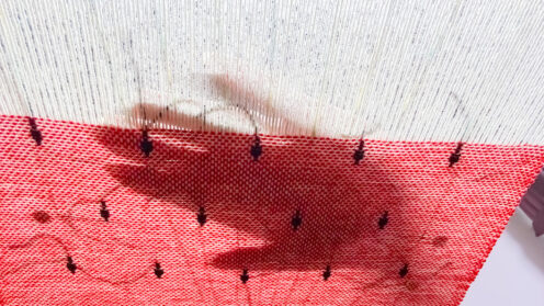 ◆製作中 種を植える スイカの種植え始めました! 今期のスイカの種はいつもより横列の数を減らし5-4-5粒ずつになりました以前の1粒ずつ多いのも良かったけど少しゆったり気味の26Verも悪くないかなって 1粒1粒織りながら植えていってますここが一番手間がかかる部分なので種ゾーンが終わるとサクサク織っていけますまた織り進めて行って、反対側の端にも種を植えたら1本目終わりそんな感じの6本が始まった所です #天仙工藝 #機織... 2026.04.29 ◆製作中◇進捗ウールコットンマフラー化繊麻